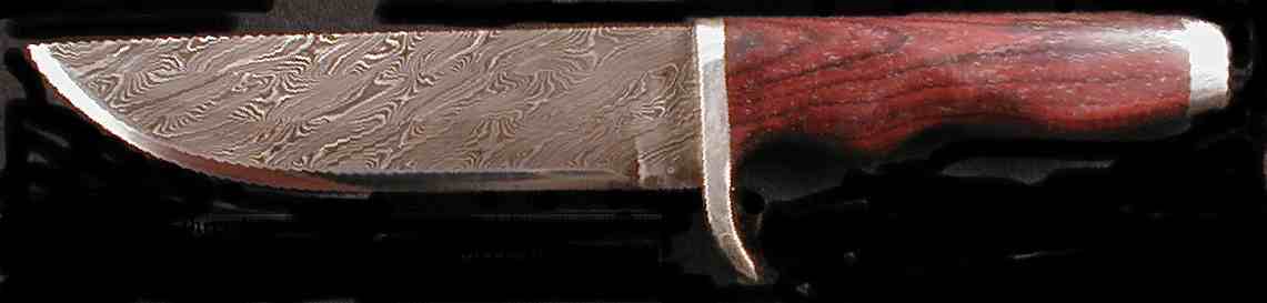 | There are times that everything goes well. This was one of them. A composite O1-pure nickel twist Damascus body of three bars with an O1 edge bar. The twist was sufficiently even to make the transition between bars virtually vanish. The grip was mahogany and nickel silver. It's gone but not forgotten. |