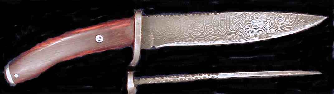| Blade Characteristics Steel Type: Damascus Composition  : O1/L6/203E/WI Billet #  : N/A Number of Layers: N/A Pattern: N/A Etch: N/A Polish: 600-1200 Dimension (inches) Length: 6 Max Thickness: 1 Min Thickness: 1 |