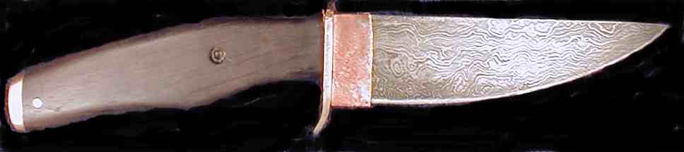 | Blade Characteristics Steel Type: Damascus Composition  : O1/L6/203E/WI Billet #  : N/A Number of Layers: N/A Pattern: N/A Etch: N/A Polish: 600-1200 Dimension (inches) Length: 6 Max Thickness: 1 Min Thickness: 1 |