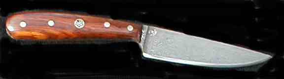 | Blade Characteristics Steel Type: Damascus Composition  : O1/L6/203E/WI Billet #  : 1102A Number of Layers: 480 Pattern: Random Etch: Light Polish: 600-1200 Dimension (inches) Length: 3.375 Max Thickness: 0.159 Min Thickness: 0.086 |