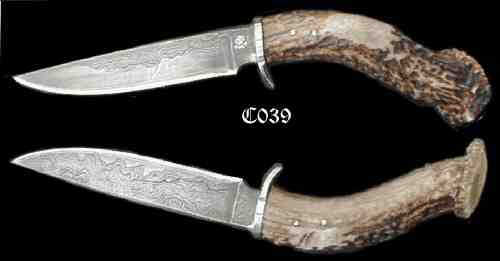 Handle Characteristics Grip Material: Crown Antler Grip Type : Bolster Fittings Material: Stainless Steel Fasteners: Threaded Pommel Dimension (inches) Length: 5.342 Max Thickness: 1.794 Min Thickness: 0.991 Max Height: 1.772 Min Height: 1.221 |