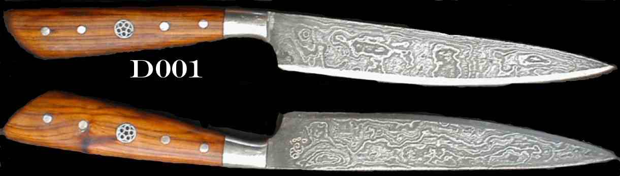 | Blade Characteristics Steel Type: Damascus Composition  : O1/L6/5160/203E/WI Billet #  : 3-Nov Number of Layers: 500+ Pattern: Random Etch: Medium Polish: 600-1200 Dimension (inches) Length: 5.069 Max Thickness: 0.178 Min Thickness: 0.094 |