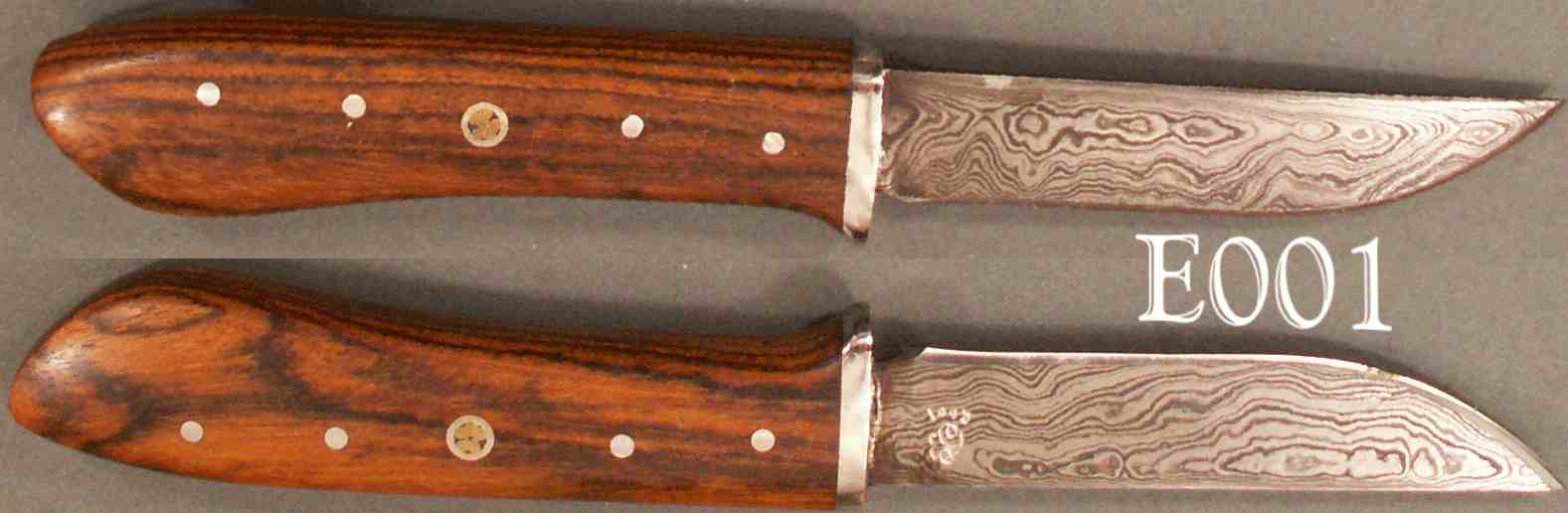 Handle Characteristics Grip Material: Rosewood Grip Type : Guard Fittings Material: Stainless Steel Fasteners: Pins+ Mosaic Pin Dimension (inches) Length: 4.7 Max Thickness: 0.7 Min Thickness: 0.645 Max Height: 1.168 Min Height: 0.941 |