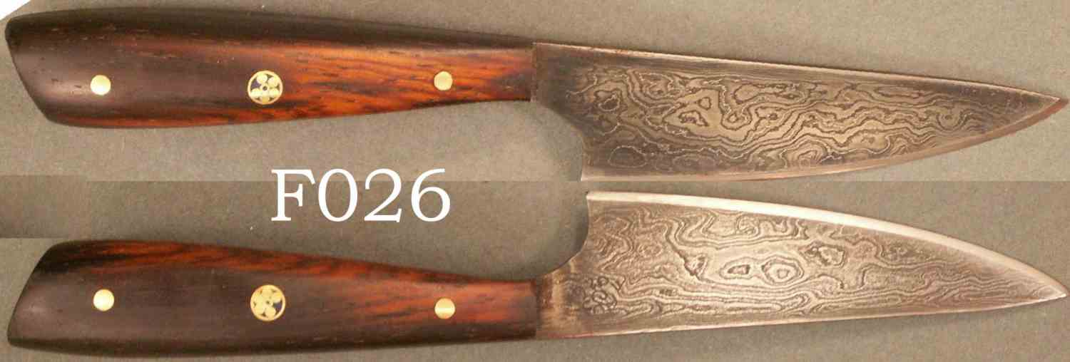 | Blade Characteristics Steel Type: Damascus Composition  : O1/L6/5160/203E/WI Billet #  : 6-Jul Number of Layers: 500+ Pattern: Random Etch: Medium Polish: Satin Dimension (inches) Length: 3.75 Max Thickness: 0.148 Min Thickness: 0.047 |