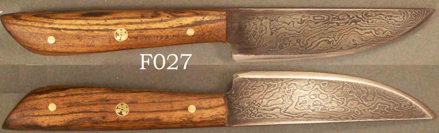 | Blade Characteristics Steel Type: Damascus Composition  : O1/L6/5160/203E/WI Billet #  : 6-Jul Number of Layers: 500+ Pattern: Random Etch: Medium Polish: Satin Dimension (inches) Length: 3.675 Max Thickness: 0.16 Min Thickness: 0.06 |