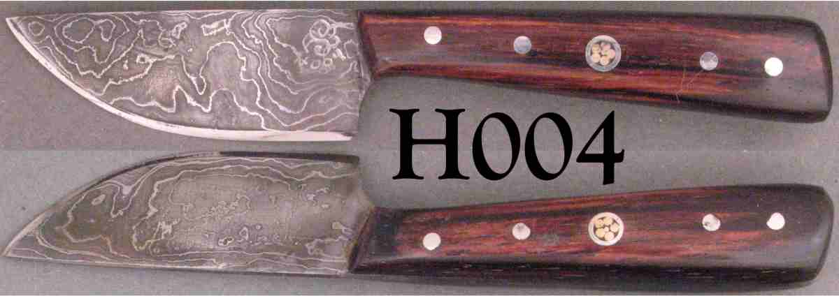 | Blade Characteristics Steel Type: Damascus Composition  : O1/L6/5160/203E/WI Billet #  : 6-Jul Number of Layers: 500+ Pattern: Random Etch: Medium Polish: 600-1200 Dimension (inches) Length: 2.625 Max Thickness: 0.083 Min Thickness: 0.054 |