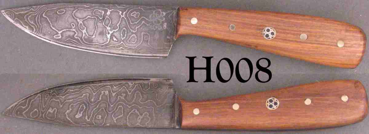 | Blade Characteristics Steel Type: Damascus Composition  : O1/L6/5160/203E/WI Billet #  : 6-Jul Number of Layers: 500+ Pattern: Random Etch: Medium Polish: 600-1200 Dimension (inches) Length: 3.6 Max Thickness: 0.115 Min Thickness: 0.037 |