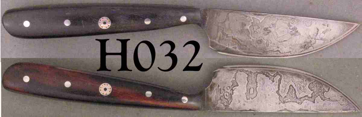 | Blade Characteristics Steel Type: Damascus Composition  : O1/L6/5160/203E/WI Billet #  : 8-Feb Number of Layers: 544 Pattern: Random Etch: Medium Polish: 600-1200 Dimension (inches) Length: 3.415 Max Thickness: 0.138 Min Thickness: 0.075 |