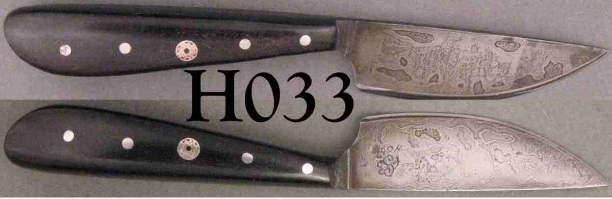 | Blade Characteristics Steel Type: Damascus Composition  : O1/L6/5160/203E/WI Billet #  : 8-Feb Number of Layers: 544 Pattern: Random Etch: Medium Polish: 600-1200 Dimension (inches) Length: 3.271 Max Thickness: 0.128 Min Thickness: 0.05 |