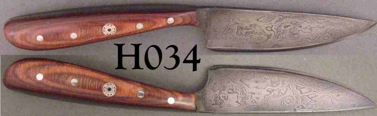 | Blade Characteristics Steel Type: Damascus Composition  : O1/L6/5160/203E/WI Billet #  : 8-Feb Number of Layers: 544 Pattern: Random Etch: Medium Polish: 600-1200 Dimension (inches) Length: 3.602 Max Thickness: 0.165 Min Thickness: 0.052 |