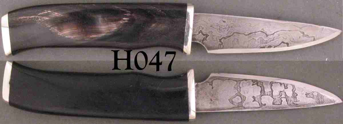 Handle Characteristics Grip Material: Horn (Water buffalo) Grip Type : Whole Fittings Material: Nickel Silver Fasteners: Threaded Pommel Dimension (inches) Length: 4.5 Max Thickness: 0.542 Min Thickness: 0.522 Max Height: 1.152 Min Height: 1.088 |