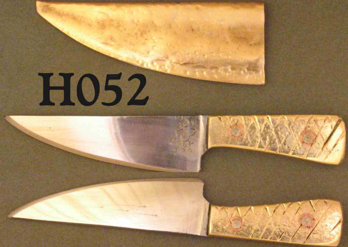 Handle Characteristics Grip Material: Brass Grip Type : Slabs only Fittings Material: Stainless Steel Fasteners: Pins only Dimension (inches) Length: 3.338 Max Thickness: 0.767 Min Thickness: 0.589 Max Height: 0.638 Min Height: 0.408 |