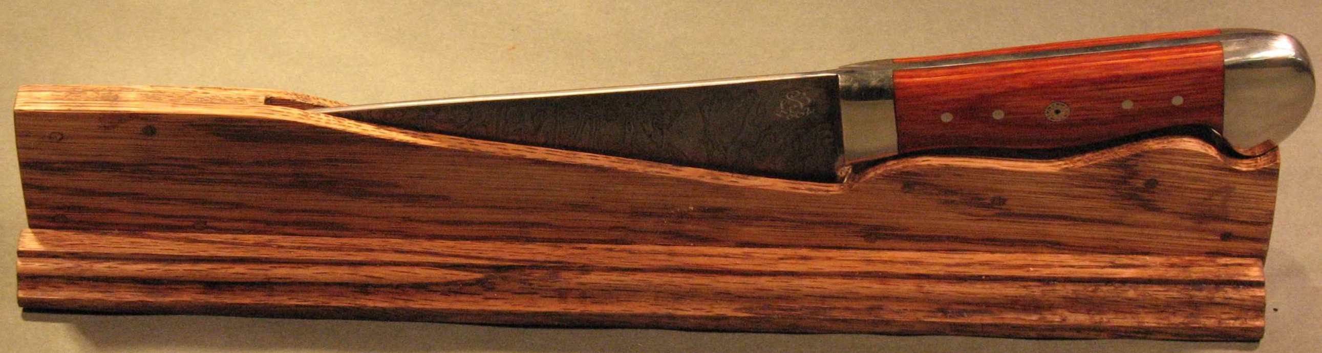 | Blade Characteristics Steel Type: Damascus Composition  : 52100 Billet #  : N/A Number of Layers: N/A Pattern: N/A Etch: N/A Polish: 600-1200 Dimension (inches) Length: 5.1875 Max Thickness: 0.124 Min Thickness: 0.054 |