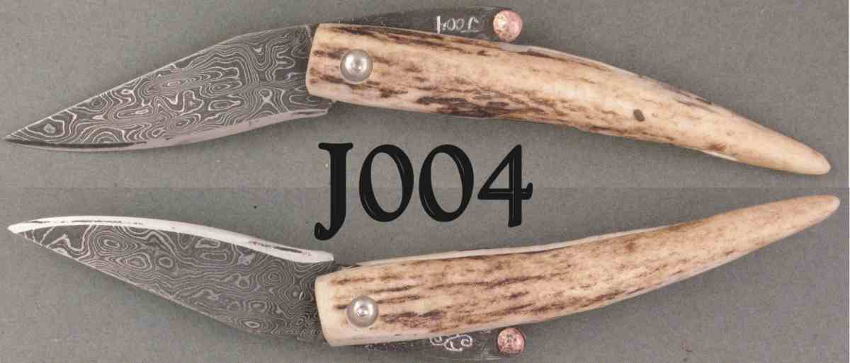 Handle Characteristics Grip Material: Antler Grip Type : Whole Fittings Material: Stainless Steel Fasteners: Bolts-SS Dimension (inches) Length: 4.3 Max Thickness: 0.697 Min Thickness: 0.2 Max Height: 0.693 Min Height: 0.211 |