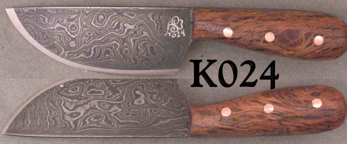| Blade Characteristics Steel Type: Damascus Composition  : O1/L6/1095/203E/WI Billet #  : 1/15/2011 Number of Layers: 408 Pattern: Dolly Parton & earth Mother Etch: Medium Polish: 600-1200 Dimension (inches) Length: 2.6 Max Thickness: 0.126 Min Thickness: 0.082 |