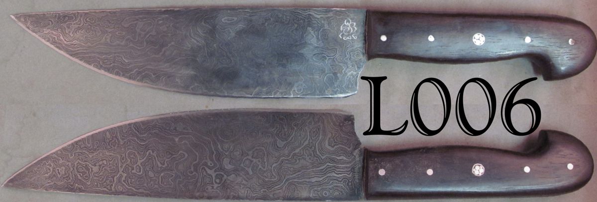 | Blade Characteristics Steel Type: Damascus Composition  : O1/L6/1095/203E/WI Billet #  : 2012-03 Number of Layers: 312 Pattern: Dolly Parton Etch: Medium Polish: Satin Dimension (inches) Length: 7.8 Max Thickness: 0.08 Min Thickness: 0.03 |
