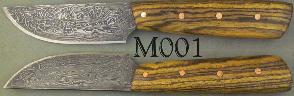 | Blade Characteristics Steel Type: Damascus Composition  : O1/L6/203E Billet #  : 2012-07 Number of Layers: 168 Pattern: Dolly Parton Etch: Medium Polish: Satin Dimension (inches) Length: 3.5 Max Thickness: 0.119 Min Thickness: 0.068 |