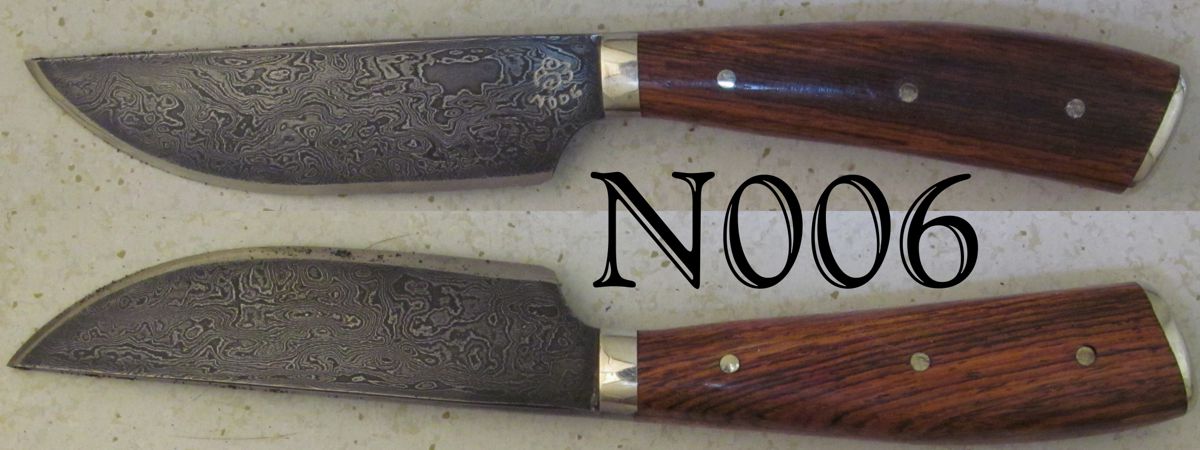 | Blade Characteristics Steel Type: Damascus Composition  : O1/L6 Billet #  : N002 Number of Layers: 270 Pattern: Dolly Parton Etch: Medium Polish: Satin Dimension (inches) Length: 4.2 Max Thickness: 0.192 Min Thickness: 0.09 |