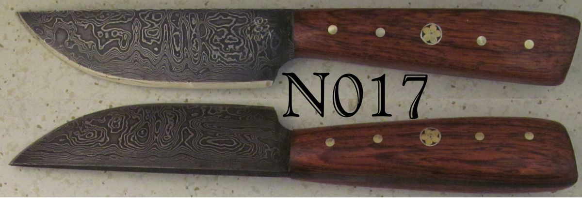 | Blade Characteristics Steel Type: Damascus Composition  : O1/L6 Billet #  : N003 Number of Layers: 132 Pattern: Dolly Parton Etch: Medium Polish: Satin Dimension (inches) Length: 4.05 Max Thickness: 0.156 Min Thickness: 0.055 |