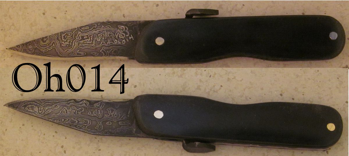 | Blade Characteristics Steel Type: Damascus Composition  : O1/L6/1095 Billet #  : N03 Number of Layers: 162 Pattern: Random Etch: Medium Polish: 600-1200 Dimension (inches) Length: 2.50 Max Thickness: 0.1 Min Thickness: 0.048 |