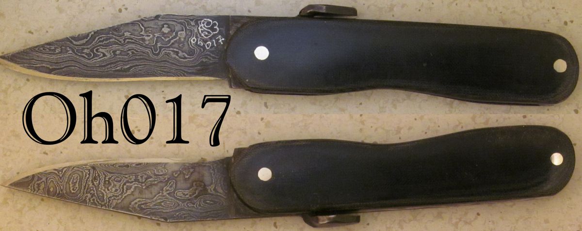 | Blade Characteristics Steel Type: Damascus Composition  : O1/L6/1095 Billet #  : N03 Number of Layers: 162 Pattern: Random Etch: Medium Polish: 600-1200 Dimension (inches) Length: 2.7 Max Thickness: 0.082 Min Thickness: 0.059 |