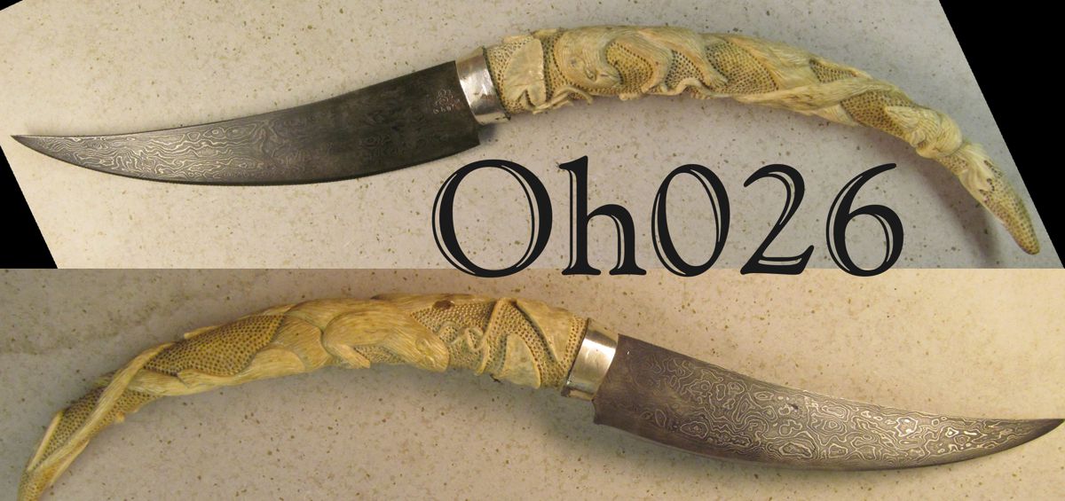 | Blade Characteristics Steel Type: Damascus Composition  : O1/L6/203E Billet #  : Oh01 Number of Layers: 318 Pattern: Random Etch: Medium Polish: 600-1200 Dimension (inches) Length: 7.75 Max Thickness: 0.155 Min Thickness: 0.068 |