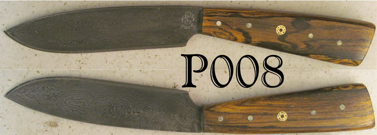 | Blade Characteristics Steel Type: Damascus Composition  : O1/L6//203E/52100 Billet #  : Oh01 Number of Layers: 312 Pattern: Dolly Parton & Earth Mother Etch: Medium Polish: Satin Dimension (inches) Length: 5.4 Max Thickness: 0.175 Min Thickness: 0.082 |