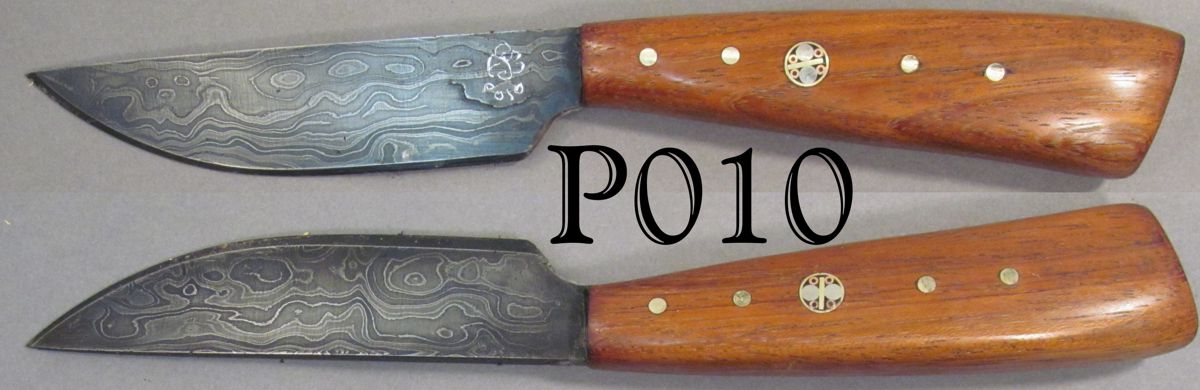 | Blade Characteristics Steel Type: Damascus Composition  : O1/L6/1095/1084 Billet #  : P02 Number of Layers: 264 Pattern: Random Etch: Medium Polish: Satin Dimension (inches) Length: 4.3 Max Thickness: 0.152 Min Thickness: 0.08 |