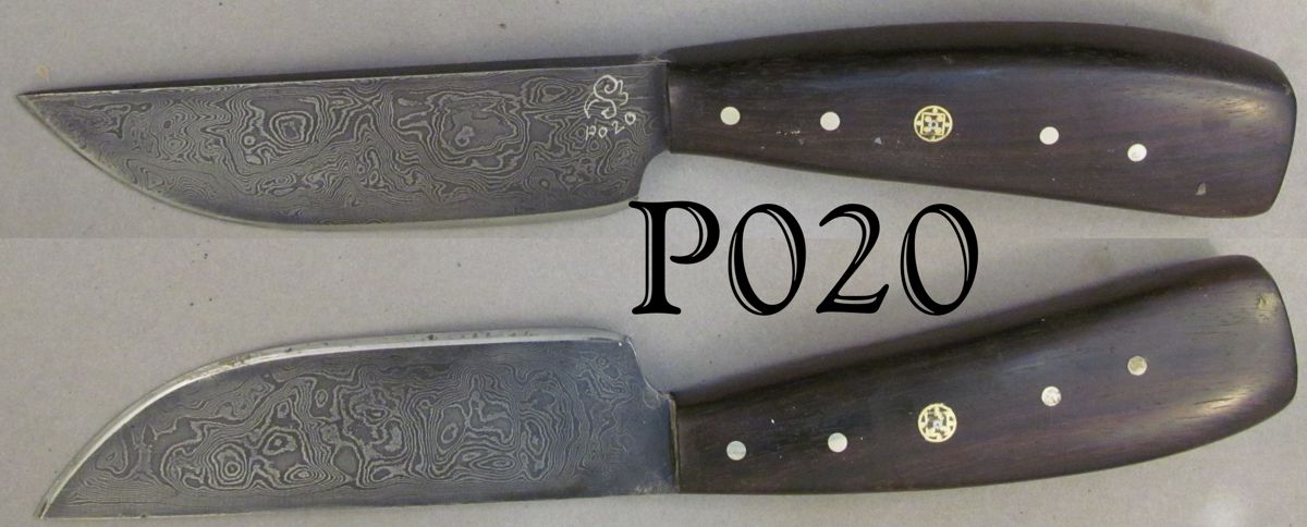 | Blade Characteristics Steel Type: Damascus Composition  : O1/L6/52100 Billet #  : P05 Number of Layers: 312 Pattern: Dolly Parton Etch: Medium Polish: Satin Dimension (inches) Length: 4.5 Max Thickness: 0.192 Min Thickness: 0.08 |