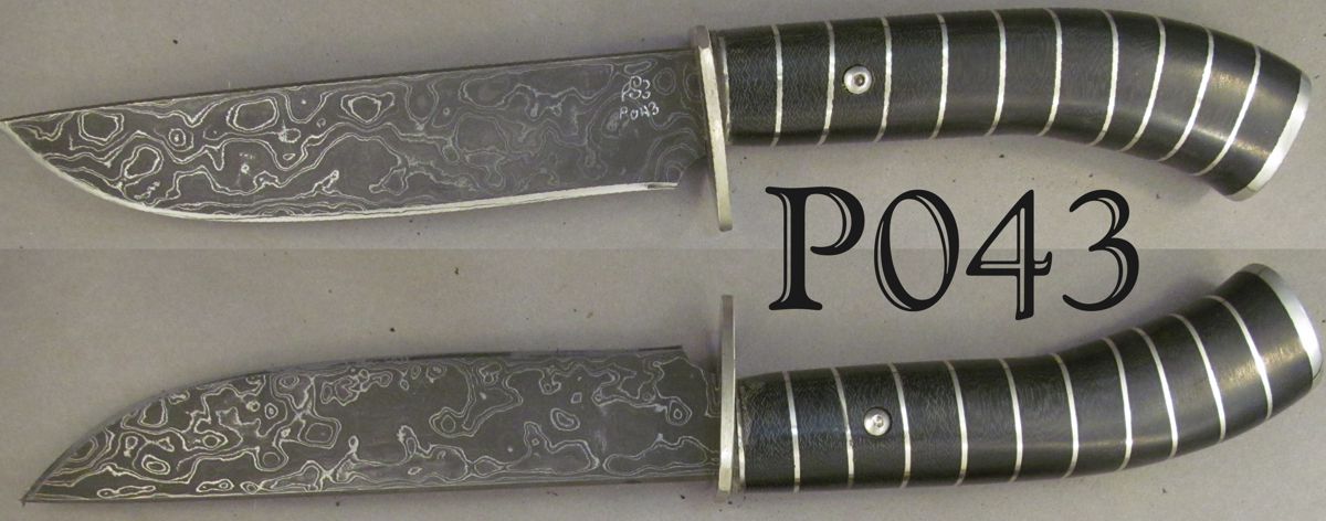 | Blade Characteristics Steel Type: Damascus Composition  : O1/L6 Billet #  : ? Number of Layers: ~200 Pattern: Dolly Parton Etch: Medium Polish: Satin Dimension (inches) Length: 6.0 Max Thickness: 0.135 Min Thickness: 0.095 |