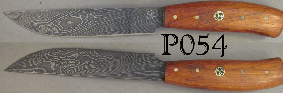| Blade Characteristics Steel Type: Damascus Composition  : O1/L6 Billet #  : P09 Number of Layers: 156 Pattern: Madona Etch: Medium Polish: Satin Dimension (inches) Length: 5.7 Max Thickness: 0.06 Min Thickness: 0.06 |