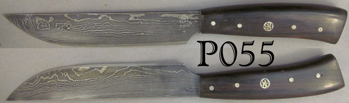 | Blade Characteristics Steel Type: Damascus Composition  : O1/L6 Billet #  : P09 Number of Layers: 156 Pattern: Madona Etch: Medium Polish: Satin Dimension (inches) Length: 5.5 Max Thickness: 0.101 Min Thickness: 0.055 |
