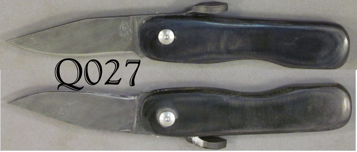 | Blade Characteristics Steel Type: Damascus Composition  : O1/L6 Billet #  : Q01B Number of Layers: 528 Pattern: Twist Etch: Medium Polish: Satin Dimension (inches) Length: 2.55 Max Thickness: 0.132 Min Thickness: 0.05 |