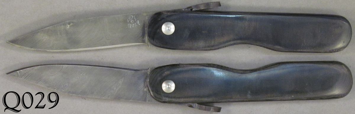 | Blade Characteristics Steel Type: Damascus Composition  : O1/L6 Billet #  : Q01B Number of Layers: 528 Pattern: Twist Etch: Medium Polish: Satin Dimension (inches) Length: 3.3 Max Thickness: 0.115 Min Thickness: 0.065 |