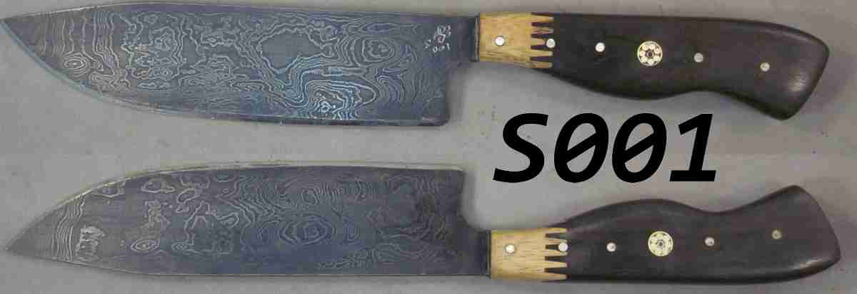 | Blade Characteristics Steel Type: Damascus Composition  : O1/L6 Billet #  : S01 Number of Layers: 204 Pattern: Dolly Parton Etch: Medium Polish: Satin Dimension (inches) Length: 7.1 Max Thickness: 0.09 Min Thickness: 0.062 |