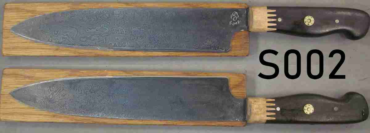 | Blade Characteristics Steel Type: Damascus Composition  : O1/L6 Billet #  : S01 Number of Layers: 204 Pattern: Dolly Parton Etch: Medium Polish: Satin Dimension (inches) Length: 8.7 Max Thickness: 0.07 Min Thickness: 0.06 |