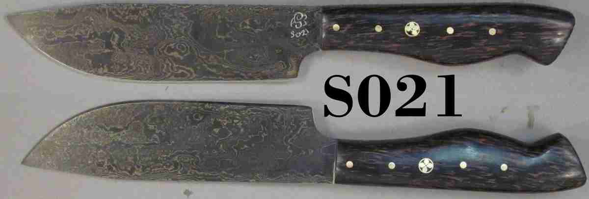 | Blade Characteristics Steel Type: Damascus Composition  : O1/L6 Billet #  : S01 Number of Layers: 204 Pattern: Dolly Parton Etch: Medium Polish: Satin Dimension (inches) Length: 6.4 Max Thickness: 0.079 Min Thickness: 0.056 |