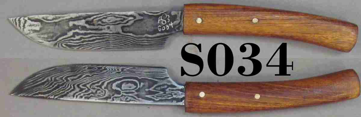 | Blade Characteristics Steel Type: Damascus Composition  : O1/8670M Billet #  : S03 Number of Layers: 80 Pattern: Twist Etch: Medium Polish: Satin Dimension (inches) Length: 4.3 Max Thickness: 0.09 Min Thickness: 0.068 |