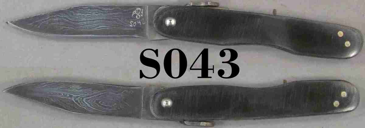 | Blade Characteristics Steel Type: Damascus Composition  : O1/L6 Billet #  : S04 Number of Layers: 288 Pattern: Random Etch: Medium Polish: Satin Dimension (inches) Length: 3.3 Max Thickness: 0.09 Min Thickness: 0.073 |