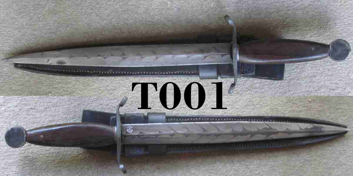 | Blade was made of 2 rods of 203E ~ 5/16 diameter & 24" long - each was bend into a 'U' and one was twisted CW, the other CCW. Place in a 'canoe' with powder metal, welded & drawn out {after removing the canoe}. |