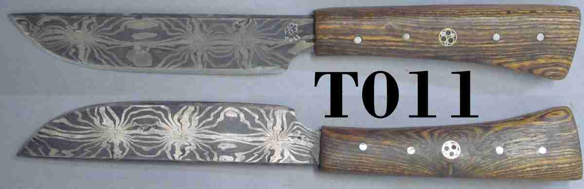 | Blade Characteristics Steel Type: Stellar Exchange Composition  : L6 & 1084 powder Billet #  : T06 Number of Layers: n/a Pattern: Designed Etch: Medium Polish: Satin Dimension (inches) Length: 5.5 Max Thickness: 0.192 Min Thickness: 0.089 |
