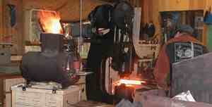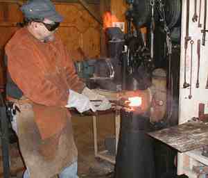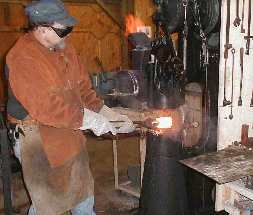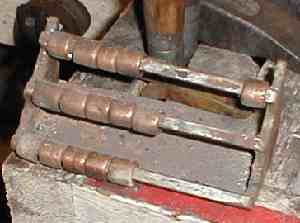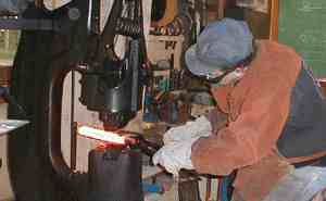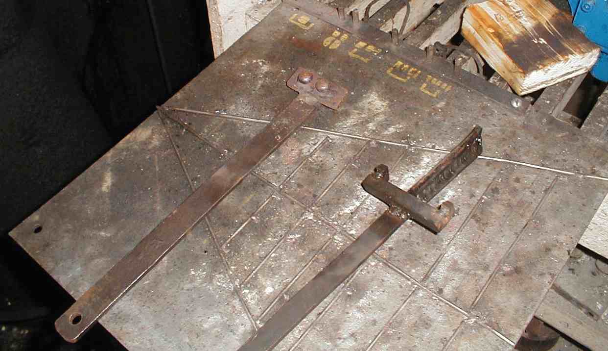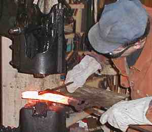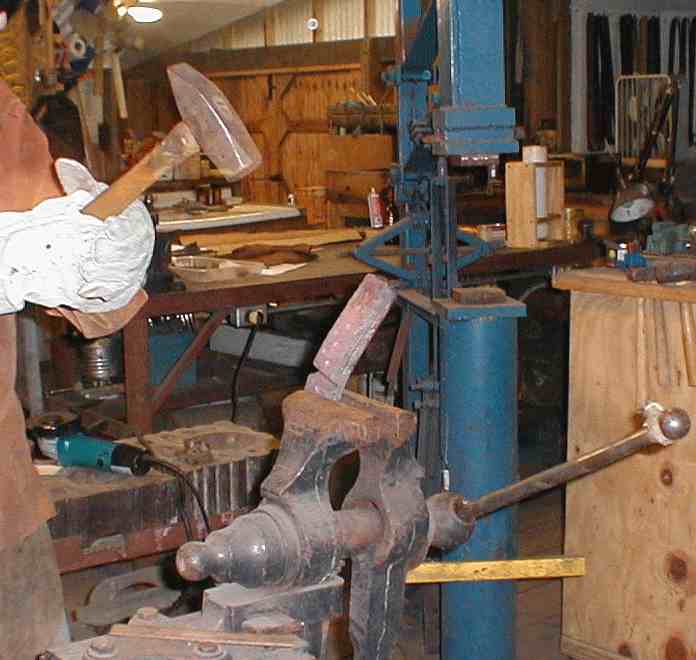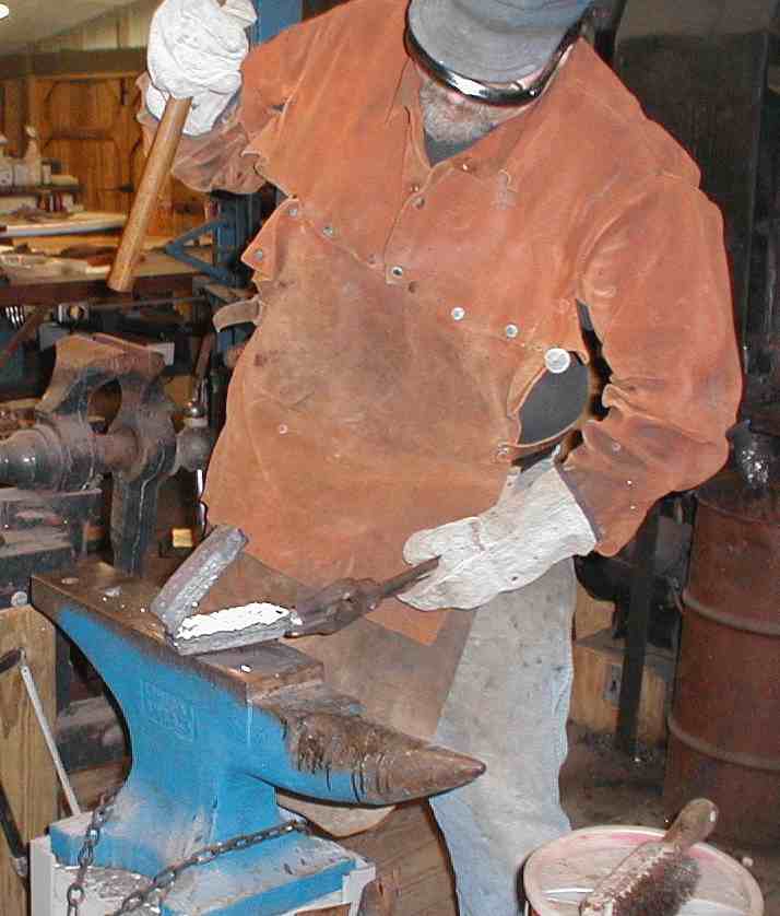 The block is next bent about 90 degrees while in the vise. It is moved to the anvil, the weld surfaces