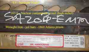 of four components: O1 - high carbon tool steel L6 - medium carbon steel 203E - high nickel mild steel Wrought Iron - ~0 carbon, high Si content 5160 - medium carbon steel (links are for composition, sources, etc.) |