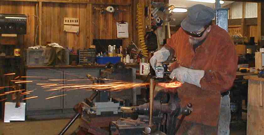 ![]() placed in the vise and 'buzzed' off with a side-grinder. This removes scale, cleans up the weld area, and crowns the block so that the weld will not make inclusions in the steel. |